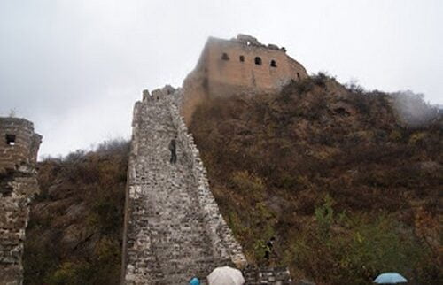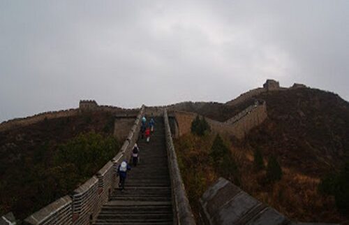 The wall at times was in a ruined and difficult condition and as we climbed and climbed the side walls in places disappeared with drops of several hundred feet visible. A truly scary and memorable experience.