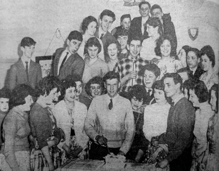 Mr David Croxall, Mafeking Cottages, Conisbrough, with his Youth Club friends, celebrating his 21st birthday at Conisbrough Methodist Church on Saturday.