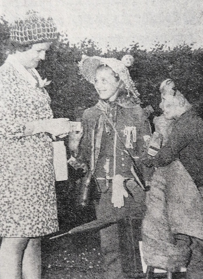 Mrs. C. Wilson, J.P. Presents prizes to Diane Bisatt and Paul Keogan after judging in the fancy dress competition at Conisbrough Hospital garden party on Saturday.