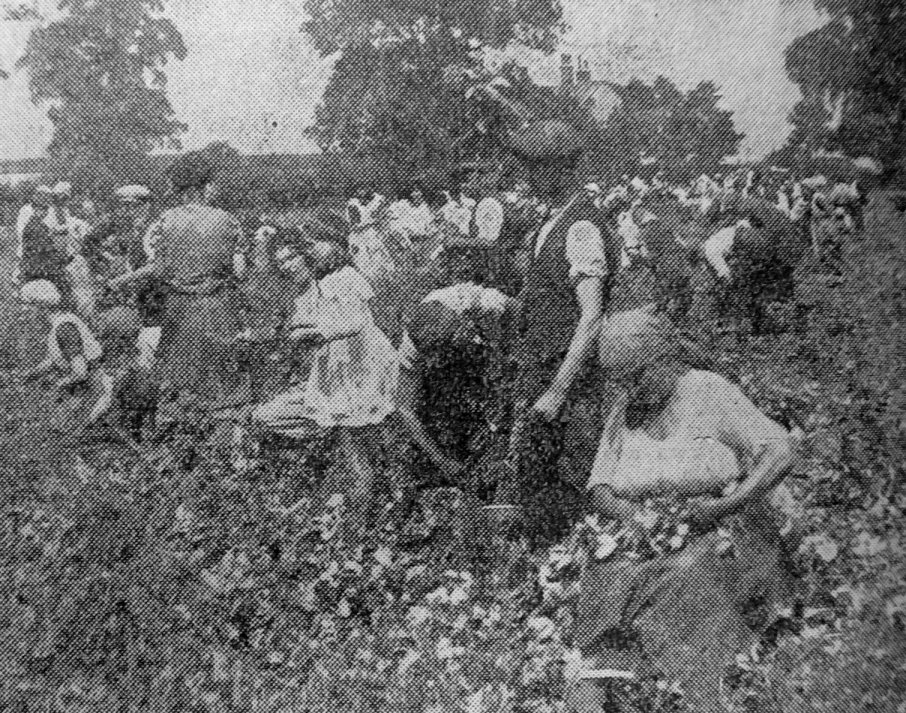 A Pea Harvest (picture)August 1933South Yorkshire Times, August 4th 1933A Pea HarvestPea pickers at work near Conisbro’.