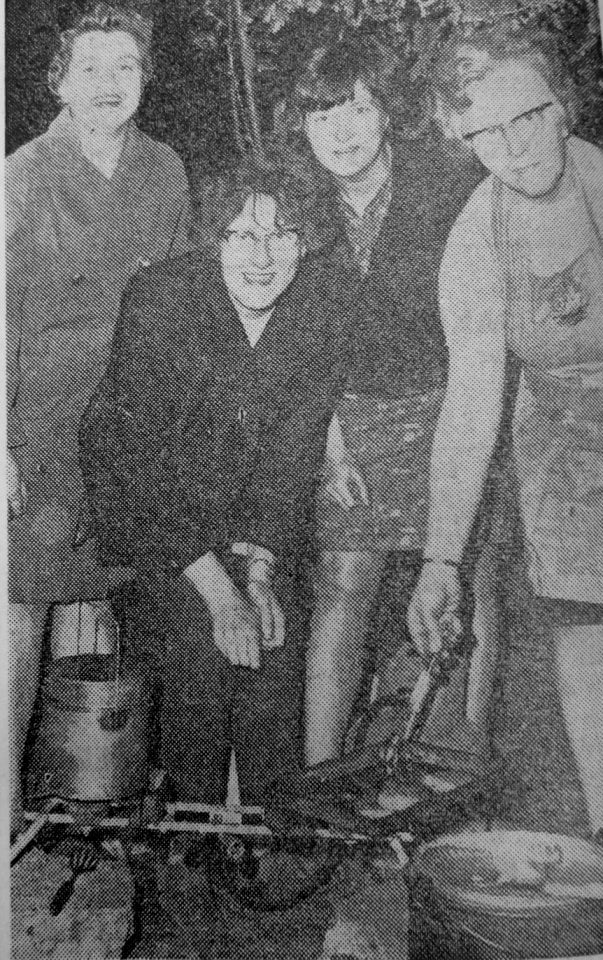 Mrs. M. Smith (second right), who organised a barbecue for Guides of the district at Clifton Lane, Conisbrough, Friday, gets a helping hand from Mrs. M. Carmody, Mrs Heron and Mrs. V. Webster.