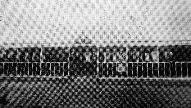 Although “Smoking” is written on four of the kitchen windows, Mr. Latham assured us that the stove had never recognised the notice. The verandah is to look out upon a lawn and flower beds. At present the entrance steps are protected by a barrel, as “Jack”, the horse persisted in calling at the door at breakfast time for stray luxurious scraps.
