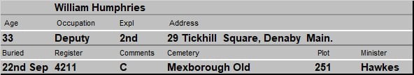 The funeral of Mr. W. Humphries, the highly respected deputy of the Cadeby Colliery, and hero and victim of the great disaster, took place on Sunday afternoon at Mexborough Cemetery.