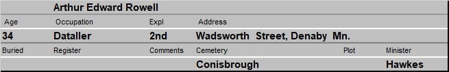 The remains of Arthur Edward Rowell, one of the victims of the Cadeby explosion, whose body was recovered last Tuesday, were quietly laid to rest at Conisbrough Cemetery yesterday, amidst many manifestations of regret.