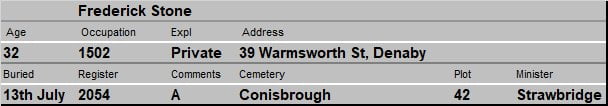 Frederick Stone came from Liverpool and lived with his wife, 33 year old Hannah from Scunthorpe.