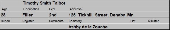 The funeral of the late Mr. Timothy Smith Talbot, of Ashby-de-la-Zouch, Leicester, took place on Saturday.