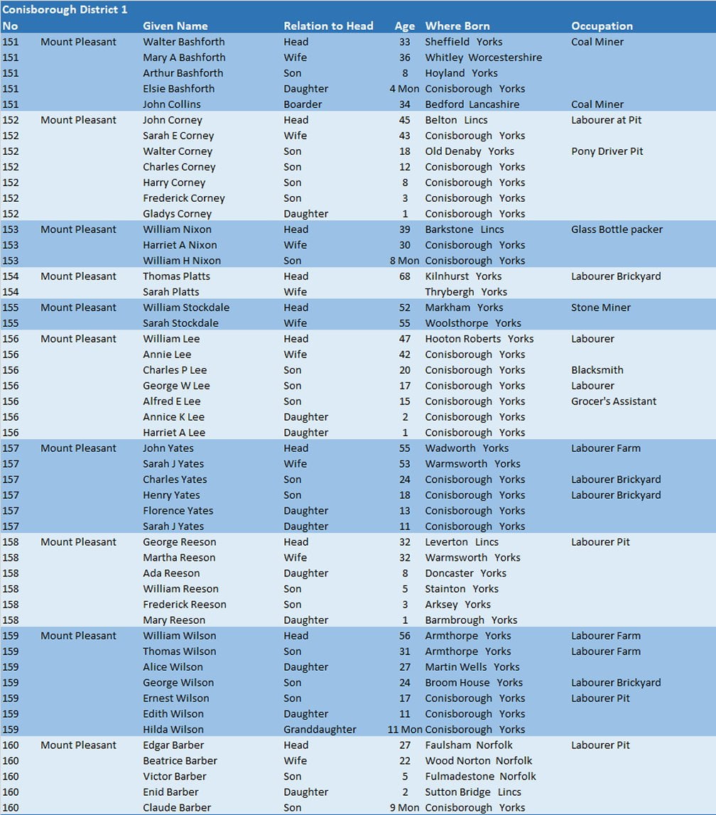 Census 1901 – Conisborough District 1.16 – Mount Pleasant