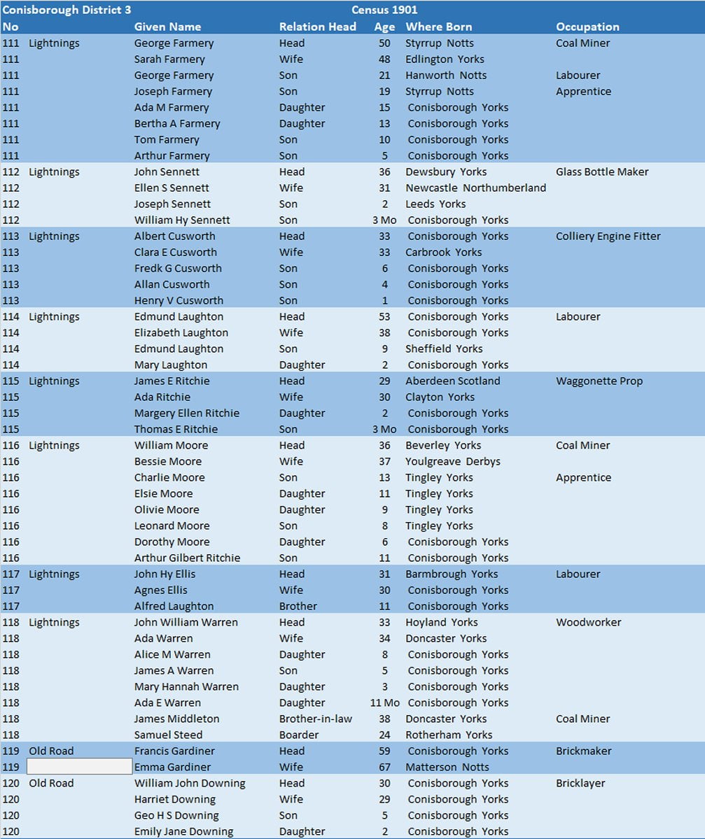 Census 1901 – Conisborough District 3.12 Lightnings, Old Road