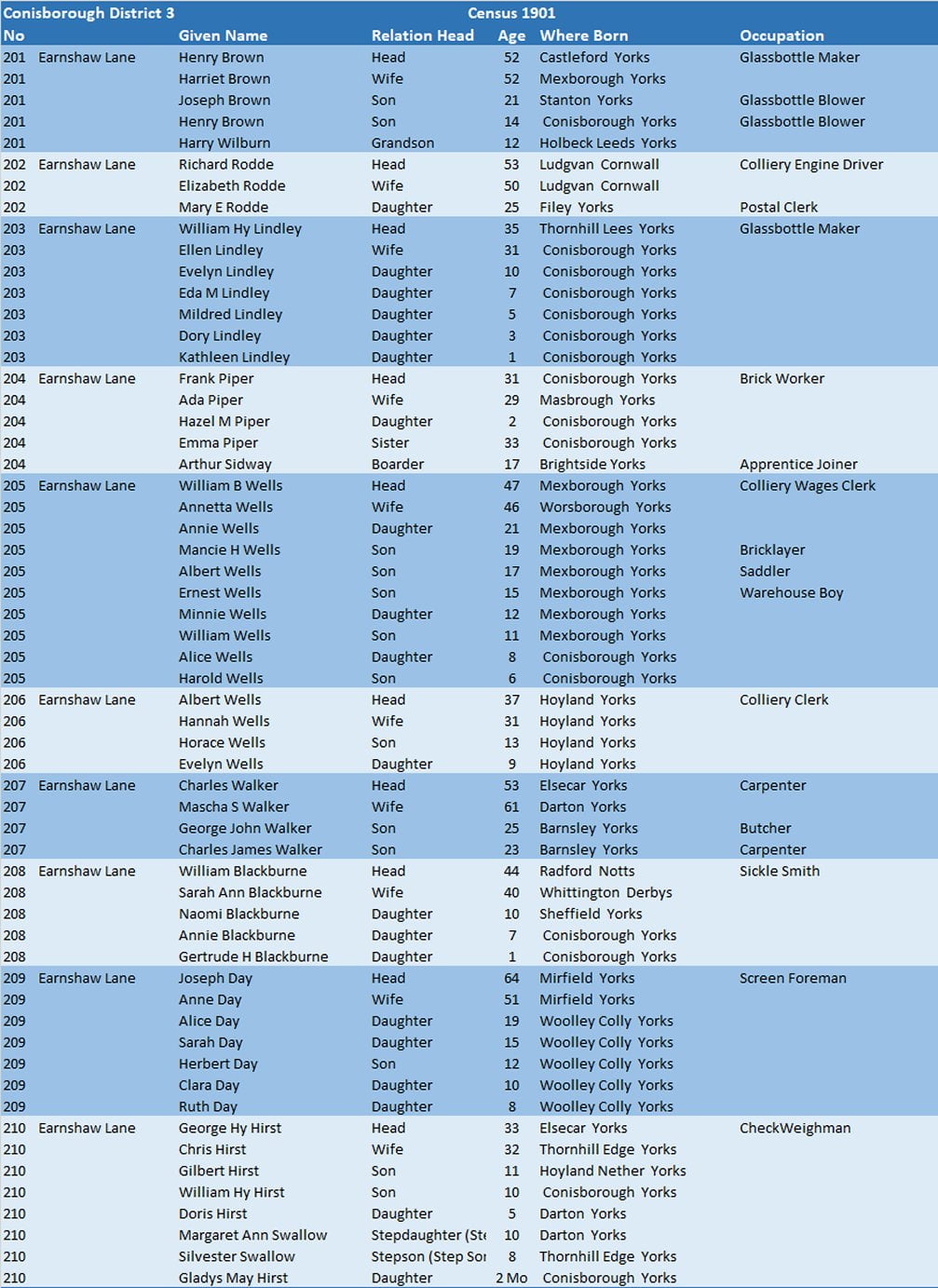 Census 1901 – Conisborough District 3.21 – Earnshaw Lane