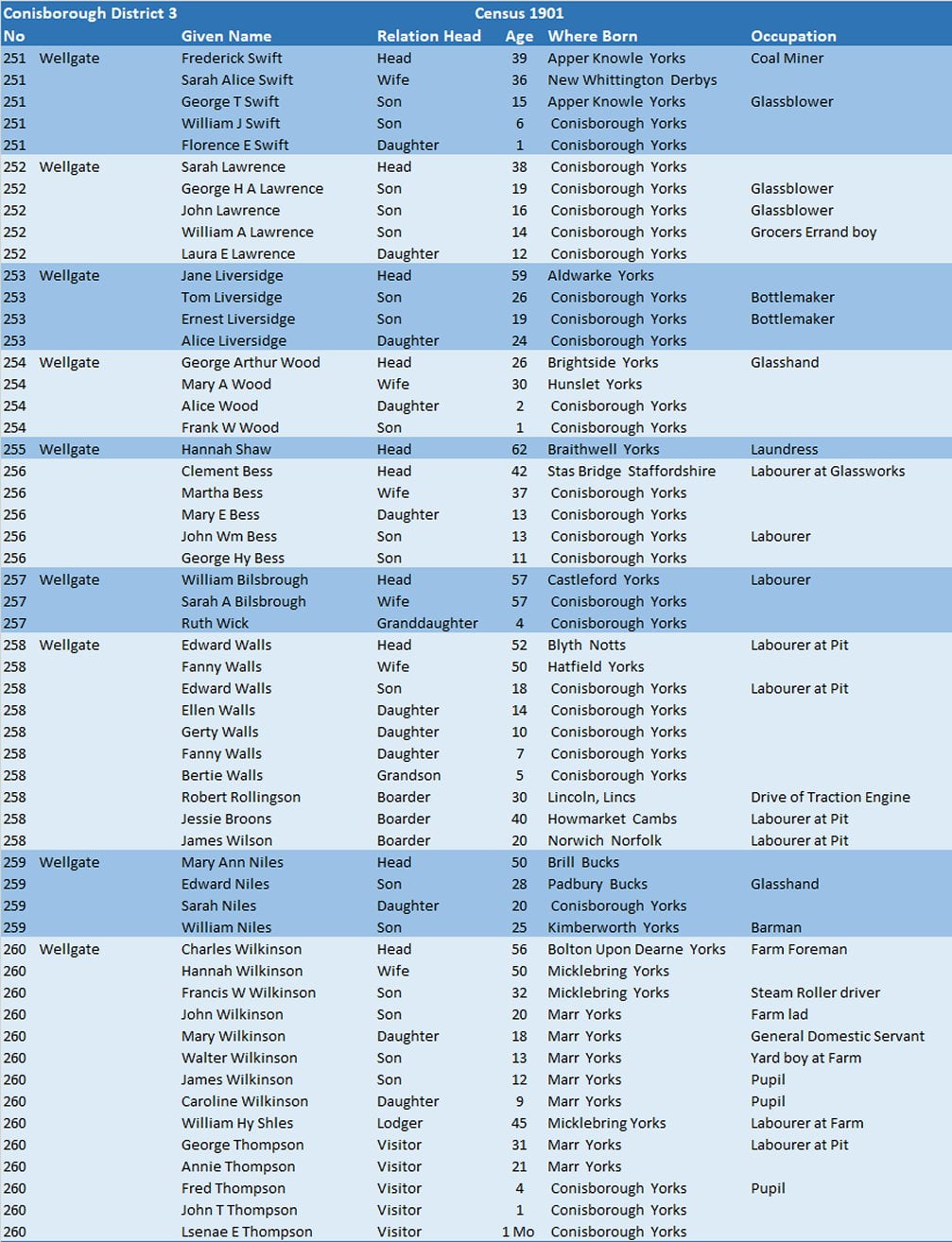 Census 1901 – Conisborough District 3.26 – Wellgate