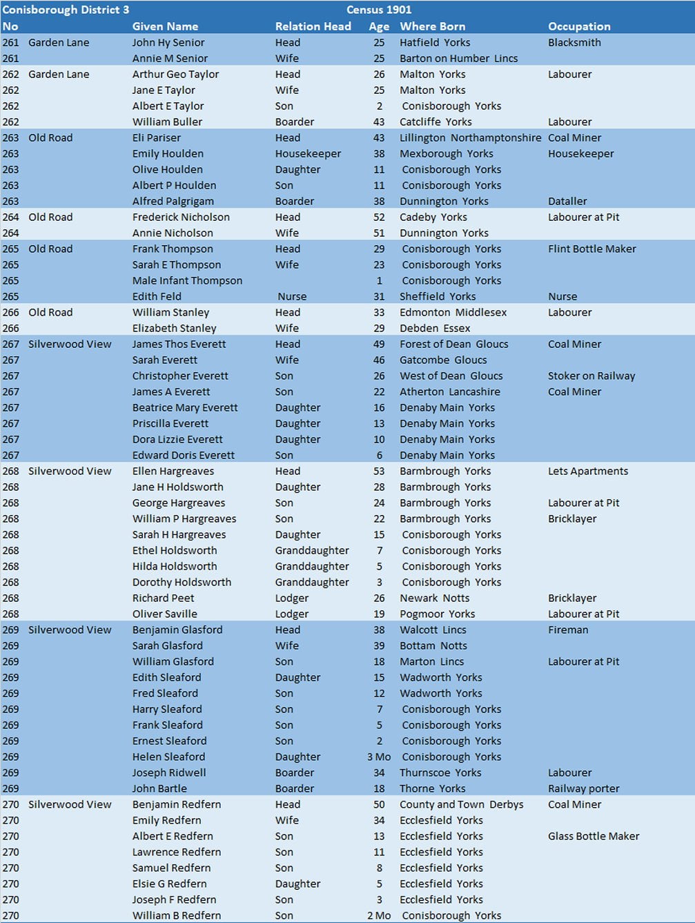 Census 1901 – Conisborough District 3.27 – Garden Lane, Old Road & Silverwood View