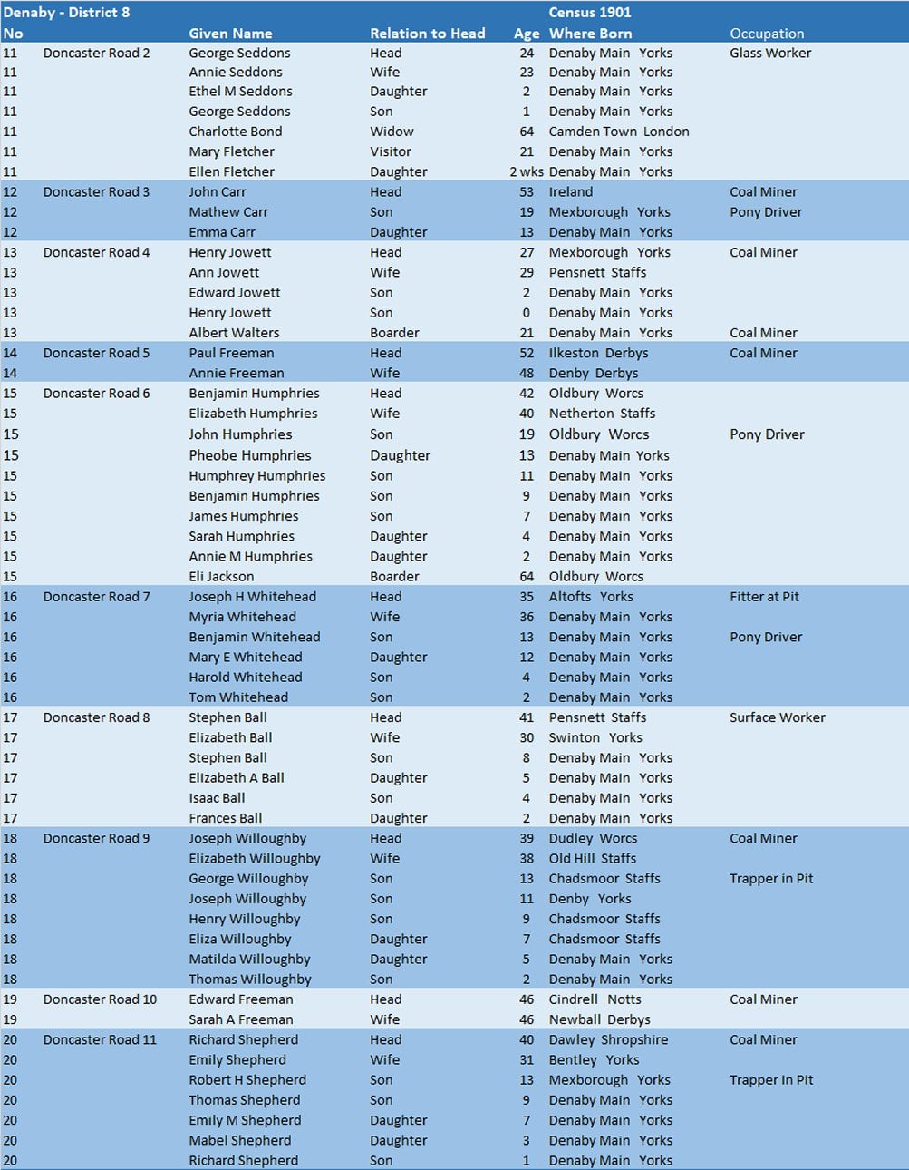 Census 1901 – Denaby District 8.02 – Doncaster Road