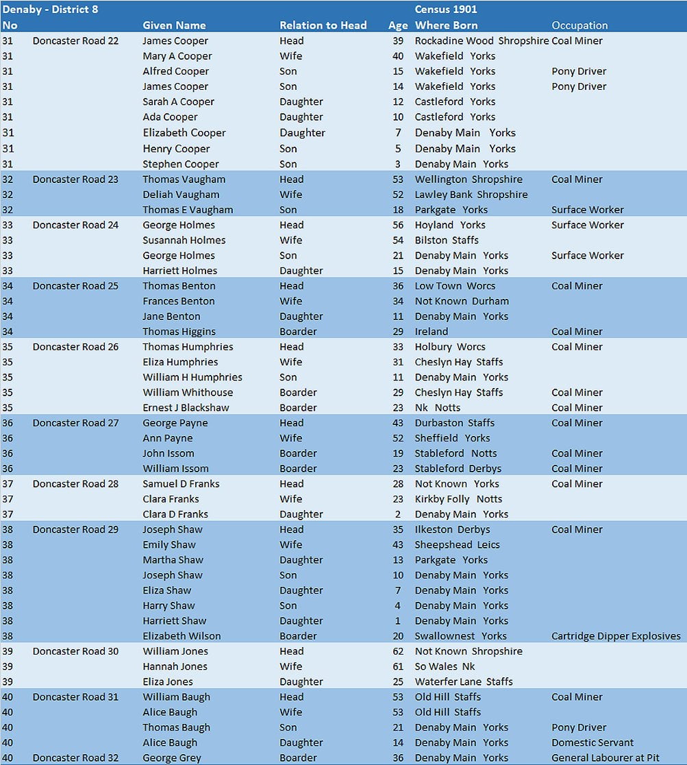 Census 1901 – Denaby District 8.04 – Doncaster Road