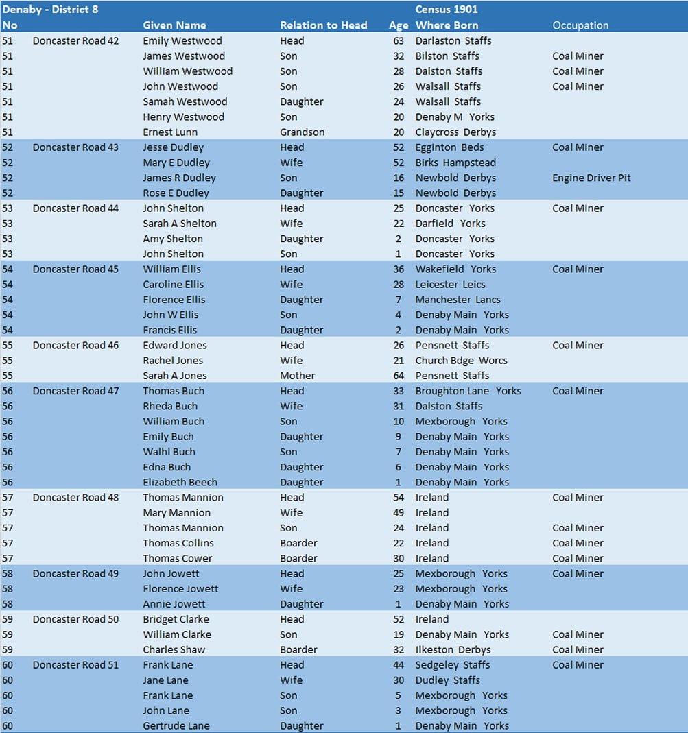 Census 1901 – Denaby District 8.06 – Doncaster Road