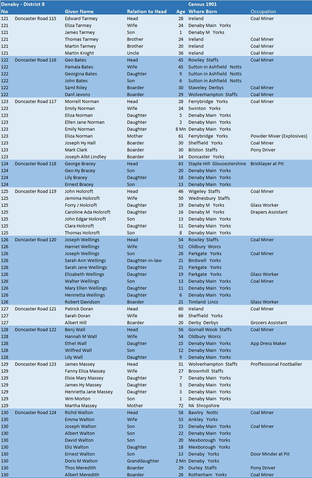 Census 1901 – Denaby District 8.13 – Doncaster Road