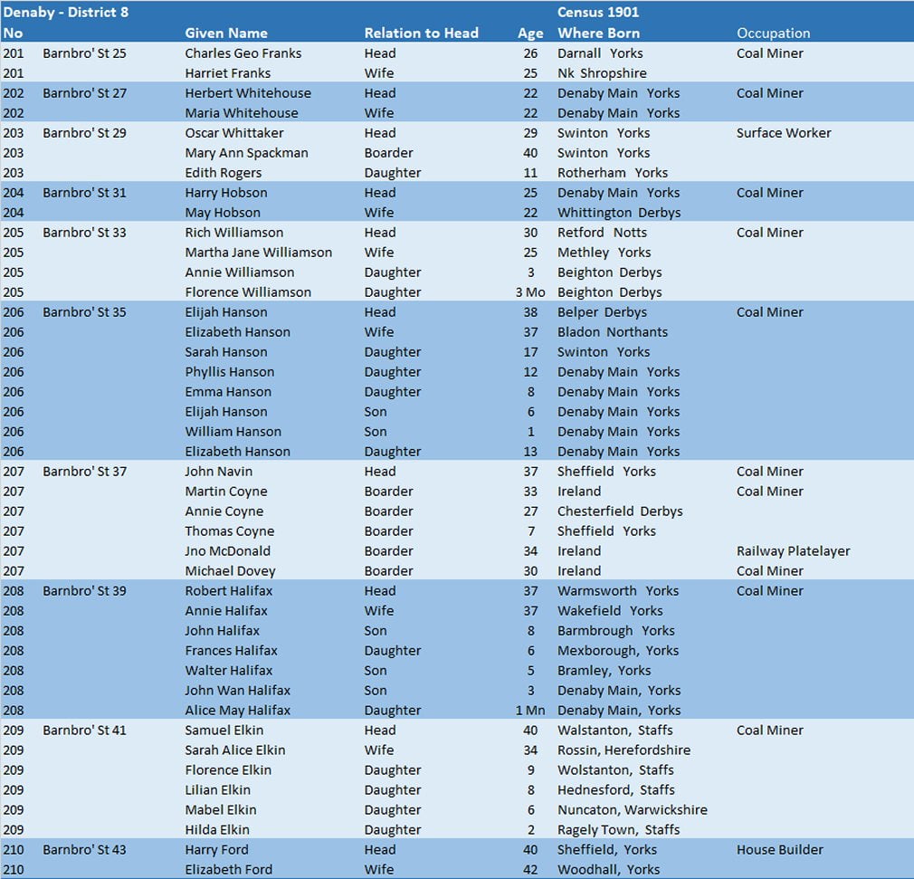 Census 1901 – Denaby District 8.21 – Barmbro’ St.