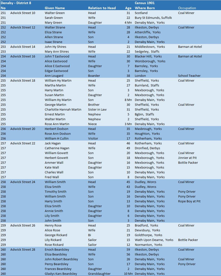 Census 1901 – Denaby District 8.26 – Adwick Street