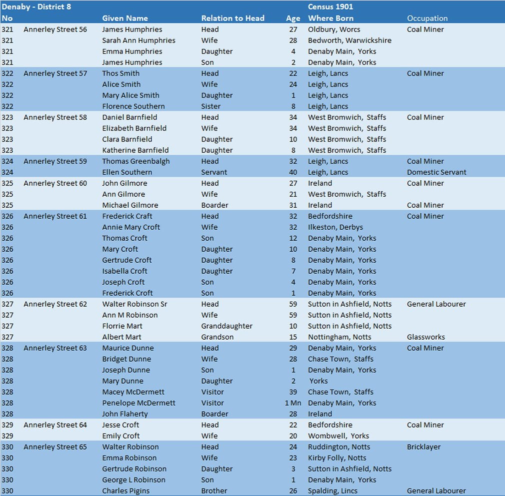 Census 1901 – Denaby District 8.33 – Annerley Street