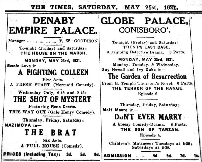 Cinemas – Denaby Empire & Conisboro’ Globe – Son of Tarzan (video)
