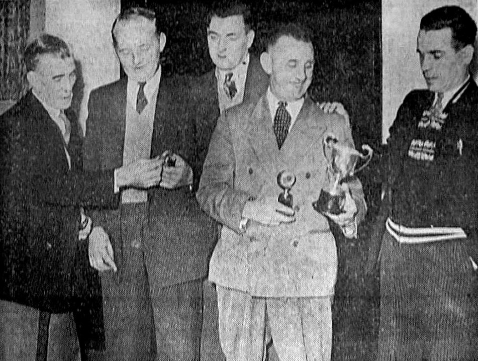 Mr C Taylor (captain) and Myers with other prizewinners of the Conisbrough and District Angling League Association trophies at a presentation held on Saturday at the Station Hotel, Conisbrough