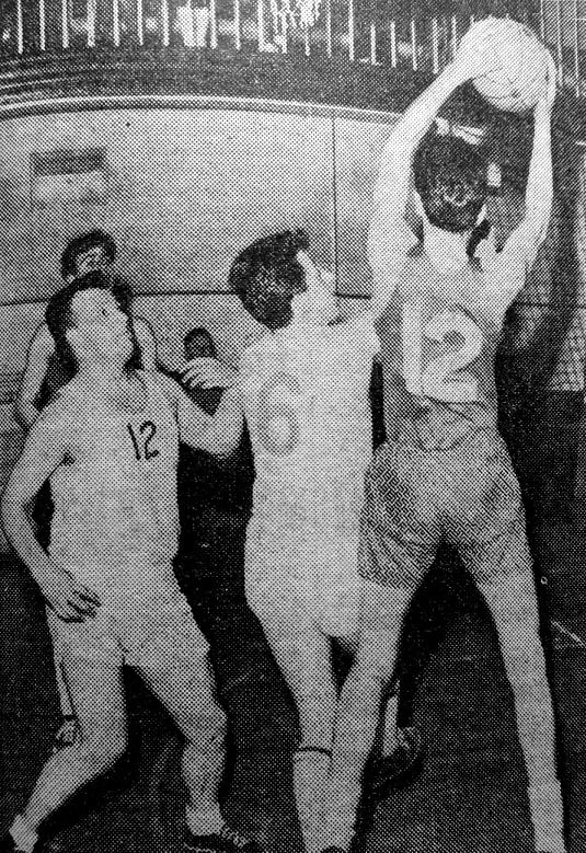 Conisbrough Clowns and Sheffield Training College Basketball players seen in action at Denaby Baths Hall on Tuesday.