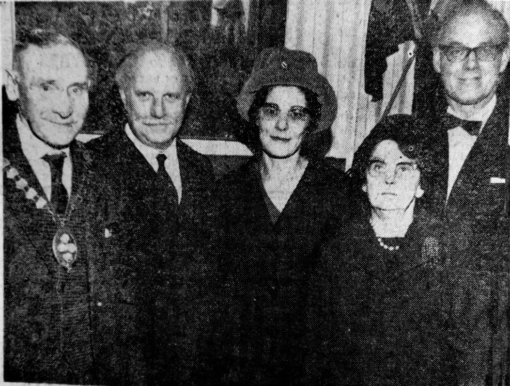 Pictured at Conisbrough Northcliffe High School Speech Day are Coun. R. H. Shephard (Chairman of Conisbrough U.D.C.), Professor J. P. C. Roach (Director of the Institute of Education at Sheffield University), Mrs. F. Warren, Mrs. M. Harrison and Mr. A. G. G. Young (Headmaster).