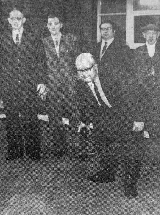 T. Salt bowls against W. Smith (left), after the opening on Friday of the new Denaby and Cadeby Miners’ Welfare bowling green and pavilion at Tickhill Square.