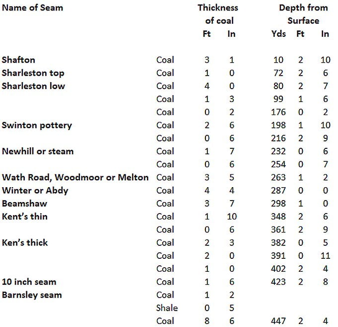 The following is a list of the seams of coal sunk through at Denaby Main Colliery: