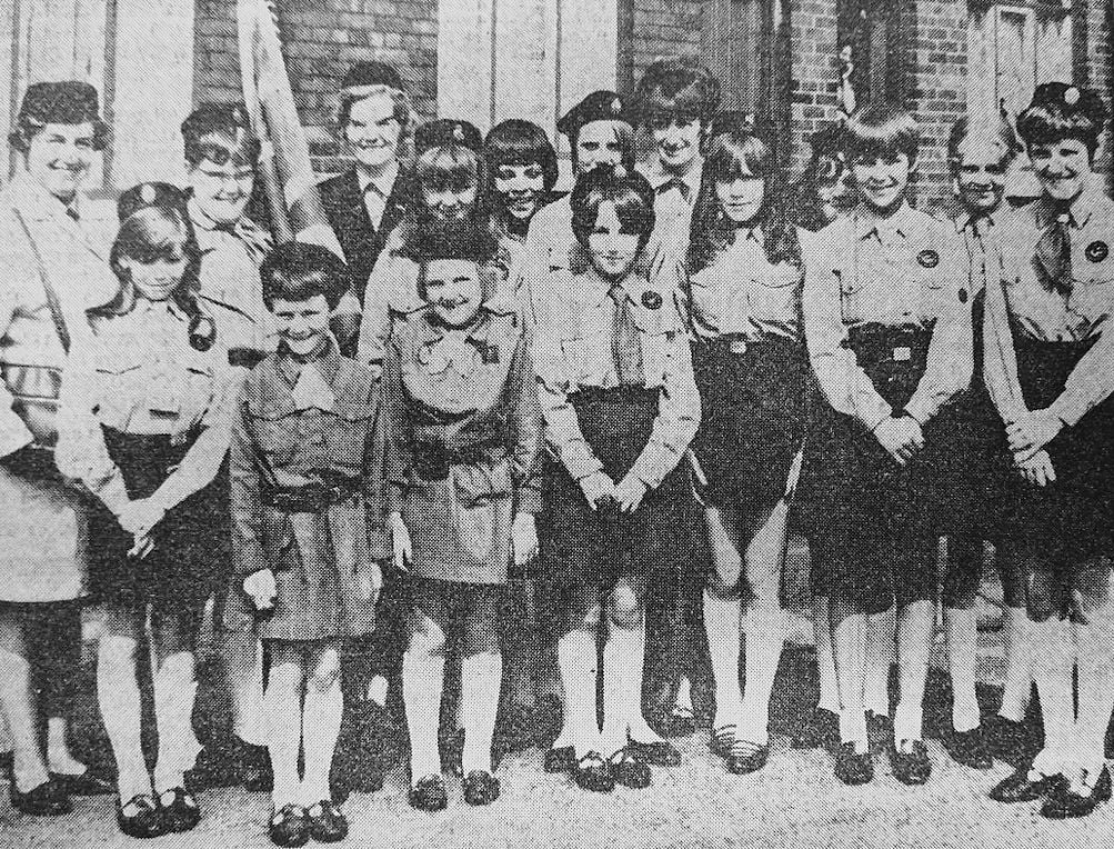 Members of the 47th Denaby Parish Church Girl Guides and the 46th St. Alban’s Brownies assembling ready to take part in Conisbrough Civic parade to Denaby Parish Church.