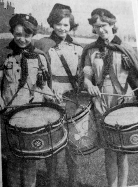 Drummers Yvonne Jackson, Mary Richards and Lynn Bostock