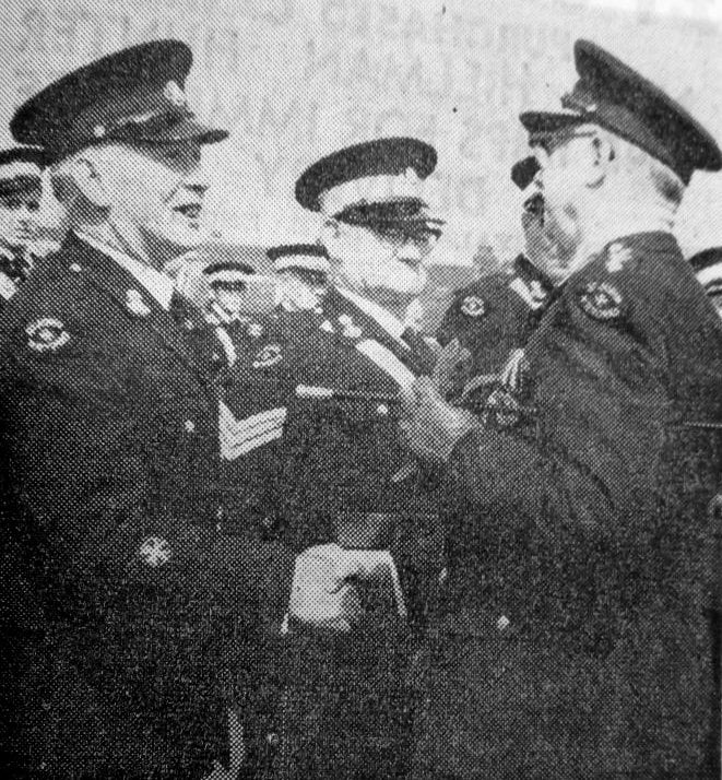 Inspecting Officer Area Commissdioner N Hulley greet Sergt Major A Roberts