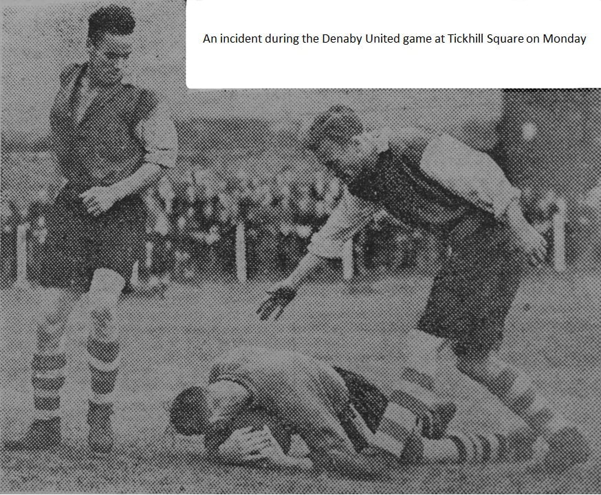 Denaby United at Tickhill Square (picture)2 July 1949South Yorkshire Times, September, 1949 An incident during the Denaby United game at Tickhill Square on Monday