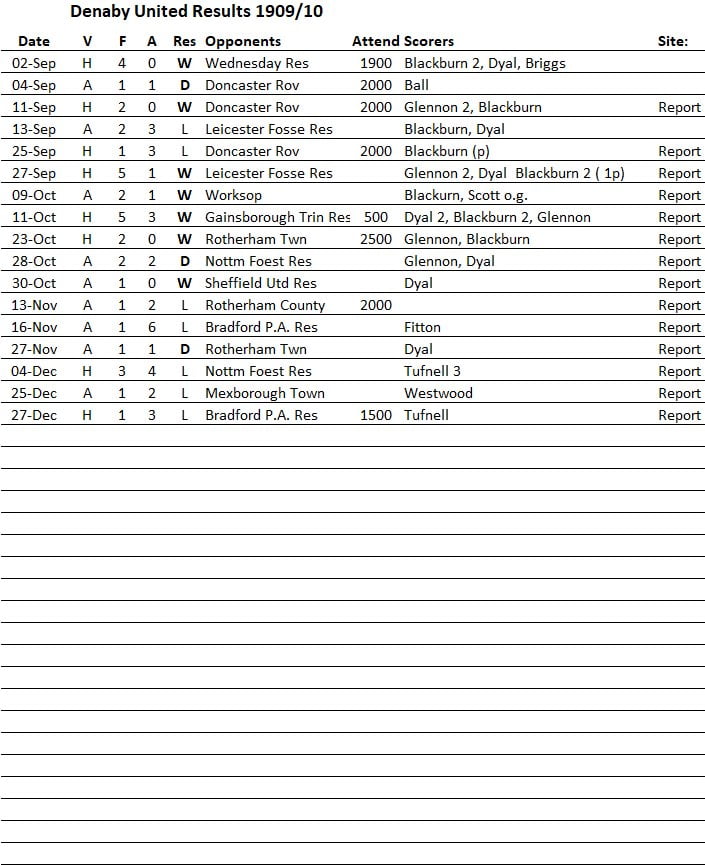 Denaby United Results – December, 1909