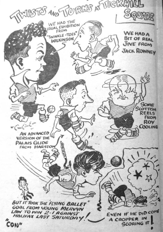 Denaby Utd – Denaby 2 Halifax Town Res 1 (cartoon)12 January 1952South Yorkshire Times, January 12th 1952