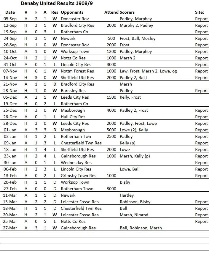 Denaby Utd – Midland League Results