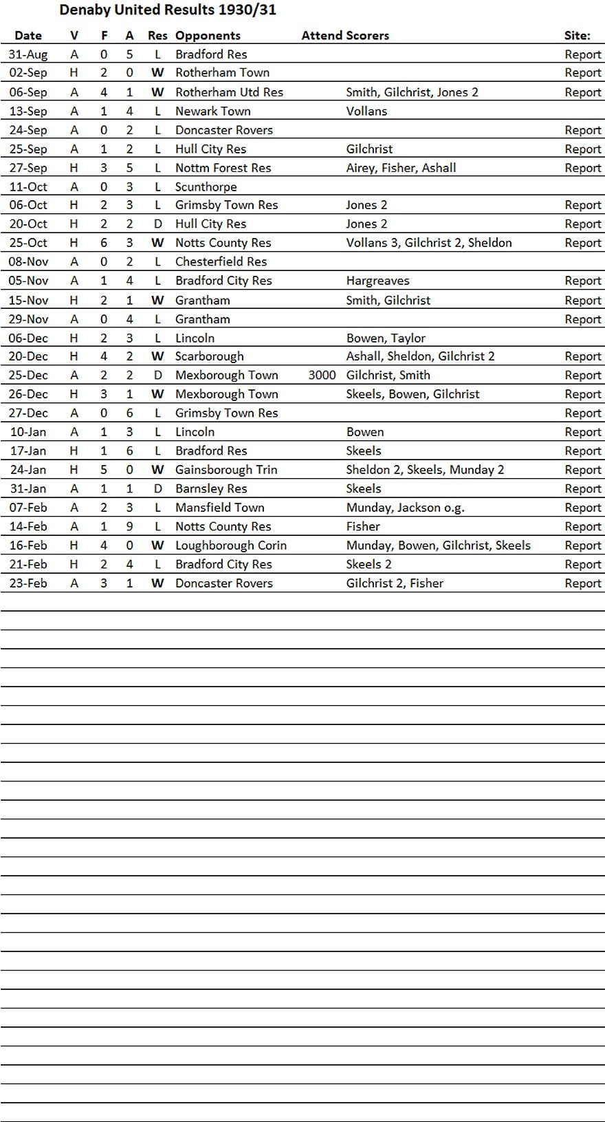Denaby Utd – Results to February 23rd, 1931