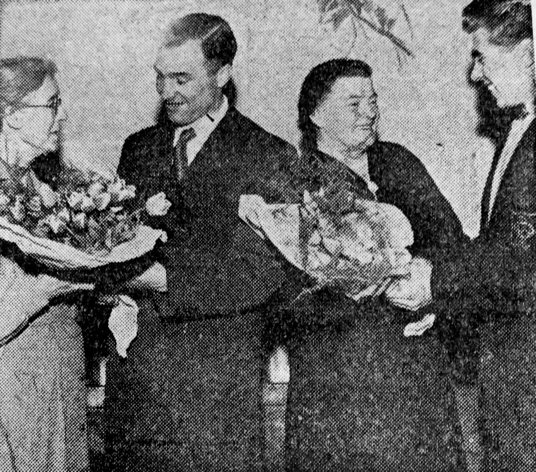 Two of the oldest supporters of Denaby United F.C. had a pleasant surprise at Denaby United and Supporters’ Clubs’ annual dinner on Friday, when they received bouquets from Bobby Southall (Denaby captain) and Ted Smethurst (goalkeeper). They are Mrs. R. Jones (78) and Mrs. I. Robson (65).
