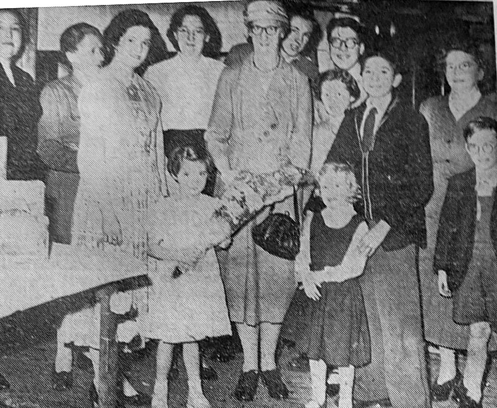 Miss L. Nock, of Balby and formerly of Fullerton Hospital, Denaby, receives a bouquet after opening Epworth Hall Methodist Church Christmas Fayre on Saturday.