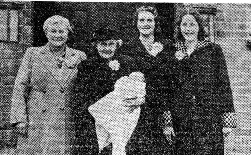 86-year-old Mrs E. Bates, 56, Doncaster Road, Denaby main, proudly holding her great, great grandchild, Alexander Harrison. Also in the picture are Mrs Bates eldest daughter, Mrs E. Boothman, of 7, Shaw Road, Edlington, her daughter, Mrs D. Hinchcliffe, of 28, Maypole Grove, Conisbrough and Mrs Bates great-granddaughter Mrs D. Harrison, mother of baby. Mrs Harrison’s husband is at present serving in the Forces .