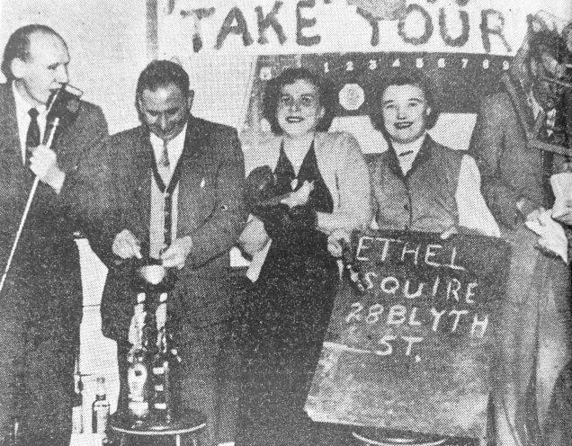 Fighting it out in the final of the “Take your Pick” competition at the Fox Inn were John Hughes, Hilda Taylor, Ethel Squires and George Herbert see with compere Noah Broadhead