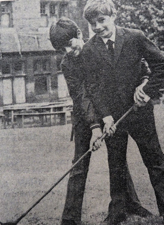John Tomlin and Mary Carmody share a gold club at Denaby St. Alban’s garden party.