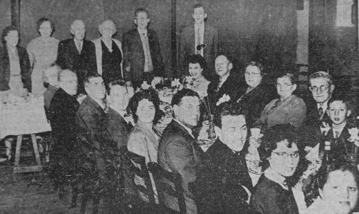 Mr and Mrs H Tillotson, of 39, Prior Road, Conisbrough, seen with guests at their Golden wedding party at Conisbrough Mission Hall on Monday