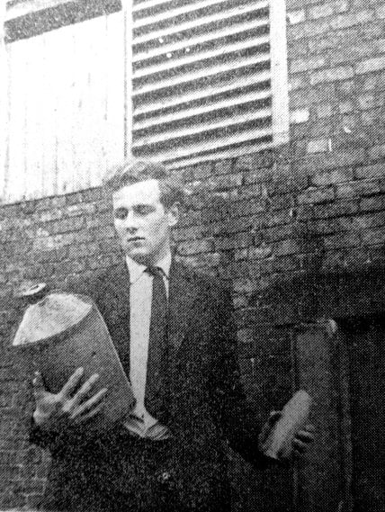 Mr Francis Ogley, of Hilltop House Farm, Conisbrough, stands in front of the 1827 brewery in the farmyard, holding a cask and bottle which were used in those days