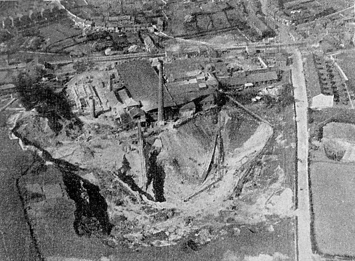 An interesting aerial view of the quarry and brickworks of the Yorkshire Amalgamated Products Ltd, adjoining Clifton Hill, which is seen to the right.