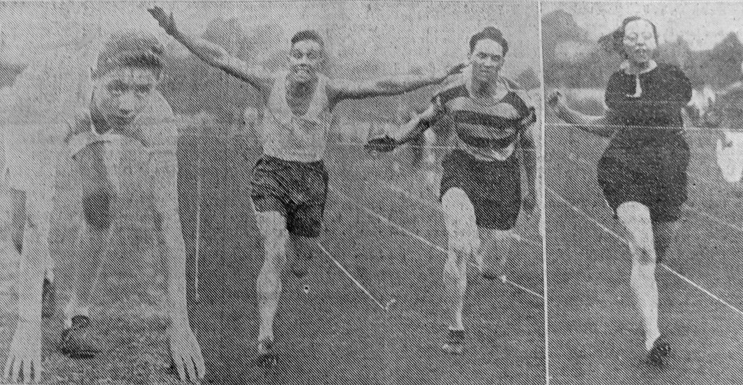 In the centre is W. Lunn, of Denaby, winning the 100 yards with little to spare, as the camera shows.