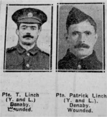 His brother private Patrick Linch (York and Lancaster) was wounded in the jaw, shoulder and arms on July 2. Both are single men and made their home with Mrs Mannion, 94 Firbeck Street, New Conisbrough