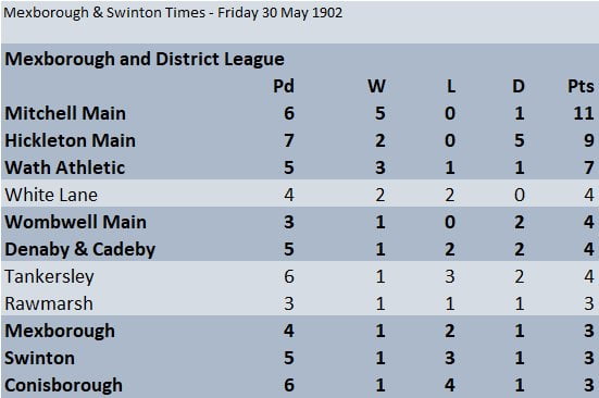 Mexborough and District League Table – May 30th 1902