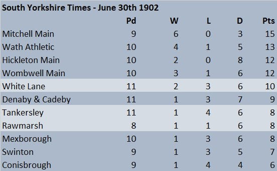 Mexborough League Table – June 30th 1902