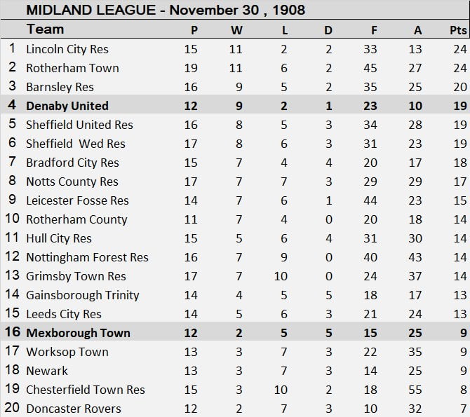 Midland League Table – November 30th 1908
