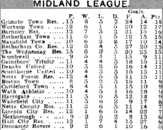 Midland League Table – October 29th 1921
